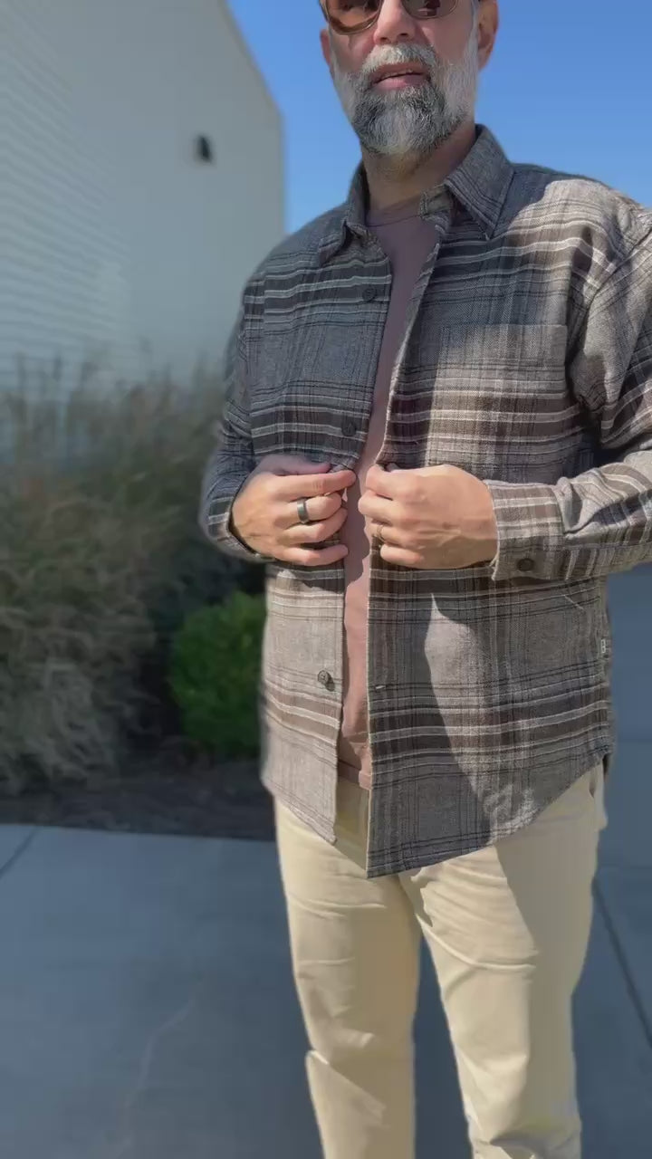 The ADWIN overshirt delivers a deliberately oversized silhouette in premium organic cotton brushed flannel, designed for effortless layering and everyday versatility. Thoughtful construction details include a functional square patch pocket, authentic imitation horn closures, and a practical hanging loop for convenient storage.Â
