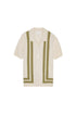 Made from high-quality organic cotton, this knitted shirt features a textured stitch design with elegant stripe detailing. Completed with luxurious Mother-of-Pearl buttons, it's a sustainable and stylish addition to your wardrobe.