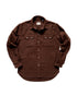 Inspired by classic Chamois shirts with a slight western edge. These shirts are made of super soft moleskin then garment dyed and softened for a lived in feel that only gets better the more you wear and wash. The cream pearl snaps are recreated from old enamel pearl snaps from the 50s that have yellowed with age.